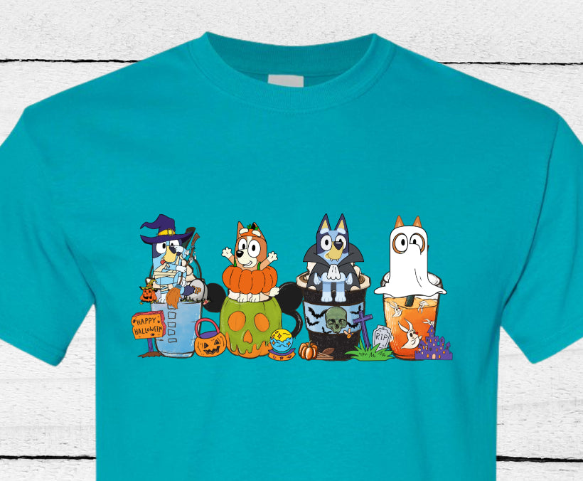 🐶👻 Trick-or-treat with everyone’s favorite pup family! Our Bluey Family Halloween design features Bluey, Bingo, Bandit, and Chilli all dressed up in their festive costumes—ready for candy, fun, and spooky adventures. This adorable design is perfect for kids, families, and anyone who loves Bluey!