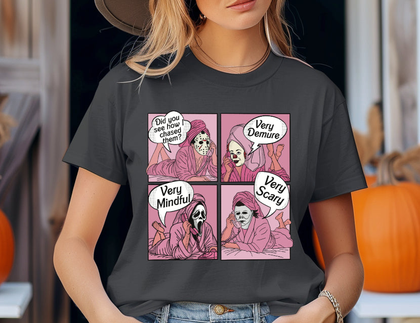 š±šŖ Even horror icons need a little self-care! Our āSelf-Care Killersā design features your favorite spooky slashers all chatting it up on the phoneābecause even the scariest villains need to vent sometimes. Perfect for horror fans with a sense of humor, this piece brings spooky season laughs with a comfy fit youāll want to wear year-round.