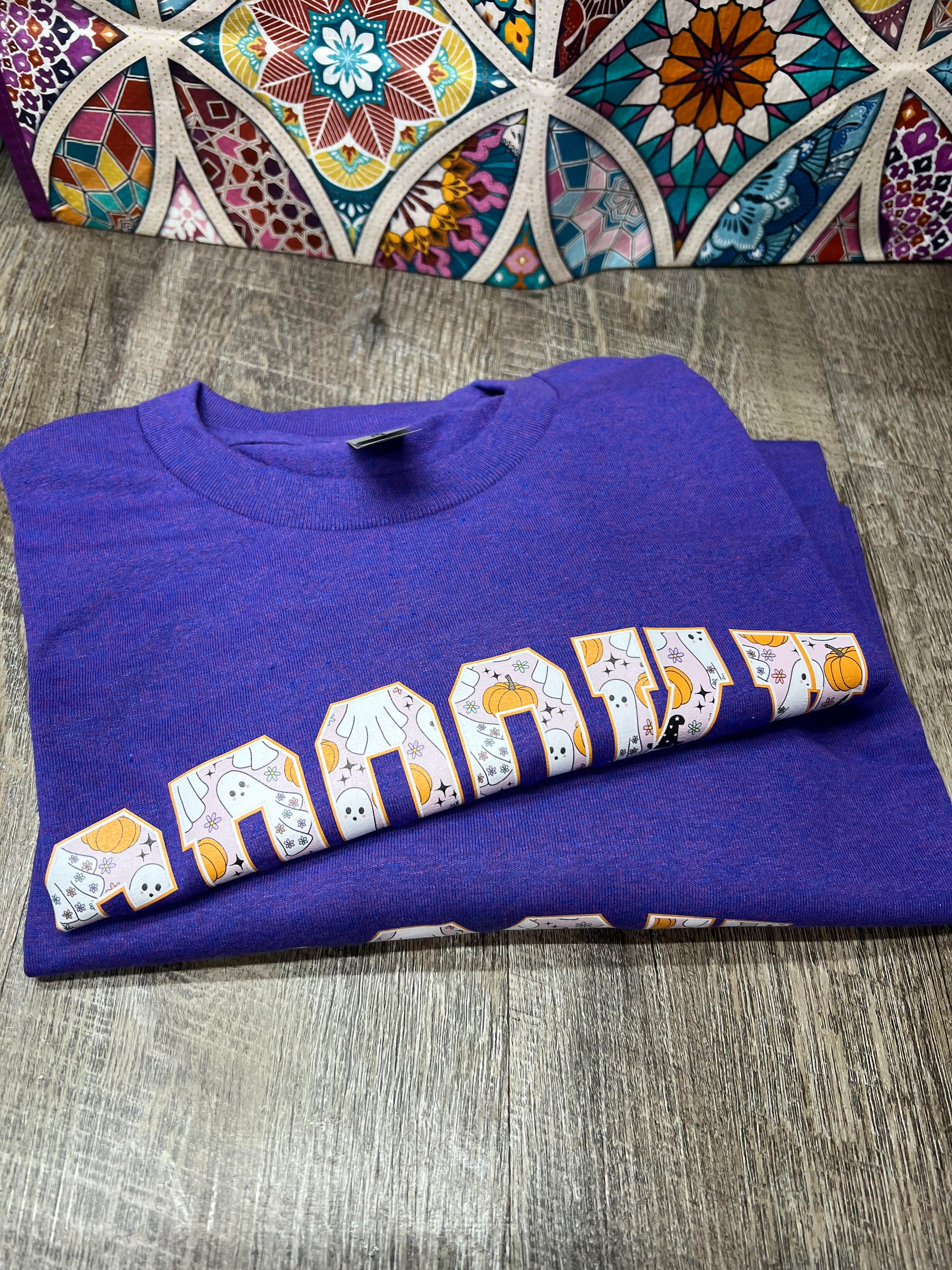 Step into fall with the cutest spooky vibes around! This Ghost Spooky Season t-shirt features an adorable ghost design that’s festive, fun, and perfect for all your autumn adventures. Printed on a soft lilac tee, it’s comfy, flattering, and ready to bring on those Halloween smiles.