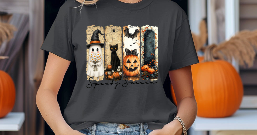 Whether you’re sipping cider, carving pumpkins, or passing out candy, the Spooky Season design is the perfect way to show off your love for Halloween. It’s festive, versatile, and a fall wardrobe staple for every ghoul and goblin.